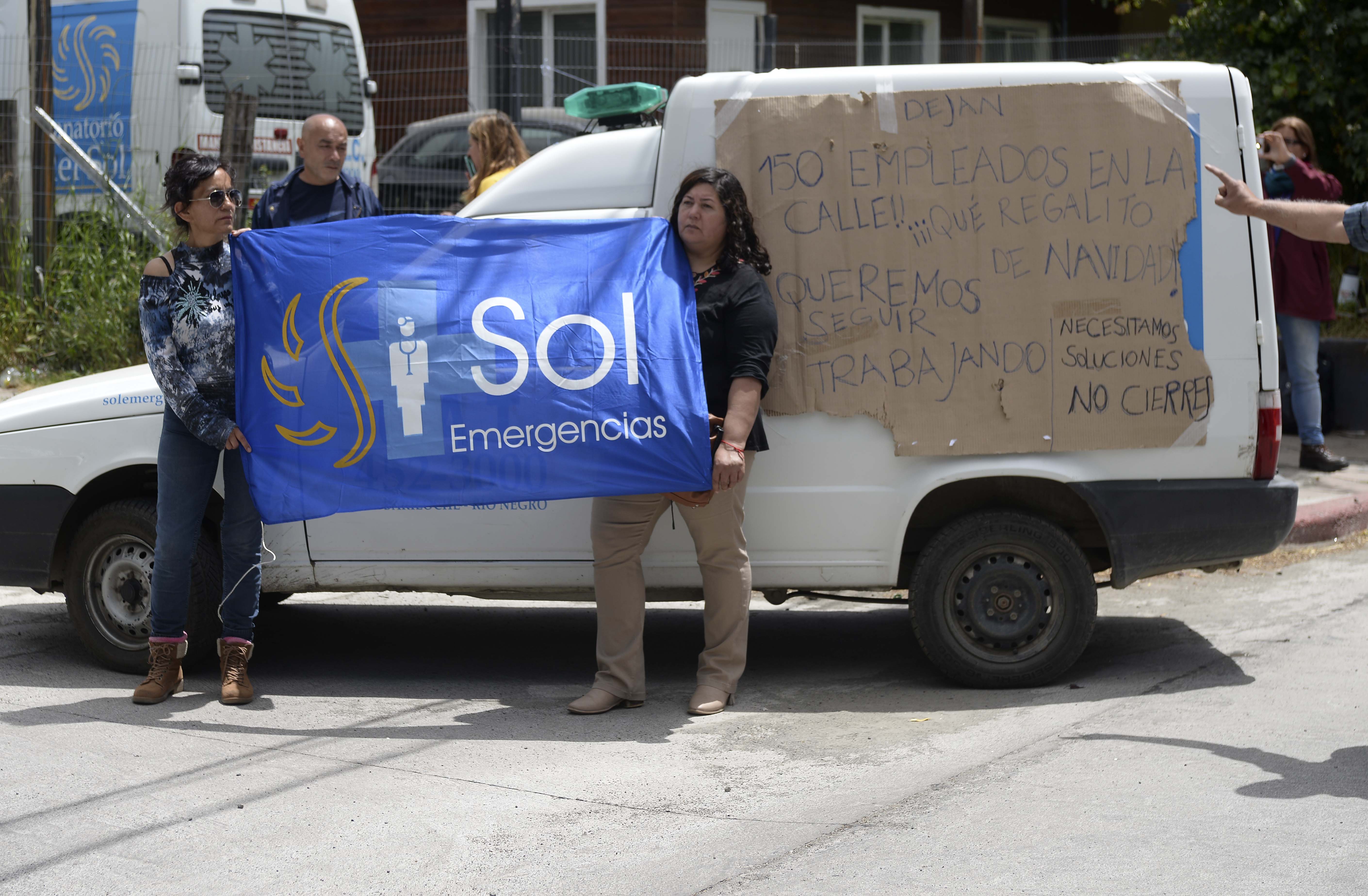 En la manifestación, los empleados con carteles y banderas expresaron sus reclamos. «No al cierre. Fabián Zgaib da la cara. Somos 150 empleados sin tener un plato de comida», indicaba una de las banderas colgada sobre una ambulancia del sanatorio, mientras que otra planteaba «necesitamos soluciones, no cierre».