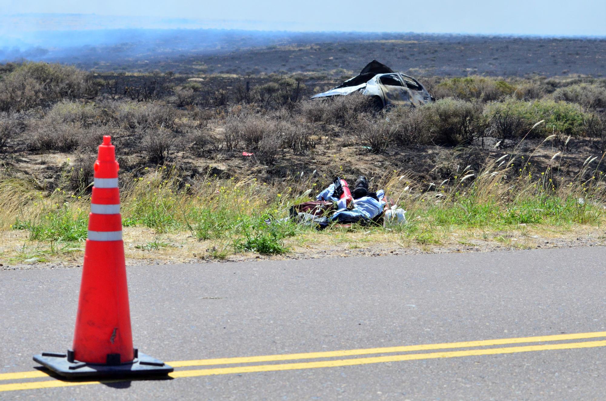 Ante la violencia del impacto, y un desperfecto en las cañerías derivó en la pérdida de combustible que provocó el siniestro del rodado. Ese foco ígneo desató una amplia quema de pasturas. Debido al volumen que tomó el fuego en ese lugar fue necesario convocar a los bomberos tras los primeros auxilios.