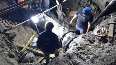 Personal de Arsa trabajaba en la colocación de una pieza especial. Cerca de las 22.30 comenzaron las tareas de empalme. No se informó aún cuando se pondrá en marcha nuevamente el sistema de bombeo desde la planta potabilizadora.