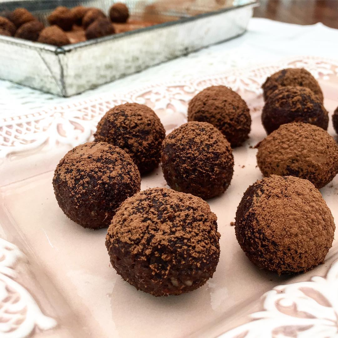 Comenzar procesando el frutos seco elegido hasta obtener un polvo. Agregar el resto de los ingredientes secos y luego los húmedos. Armar las bolitas con las manos y llevar a la heladera por 1 hr. Espolvorear con cacao amargo y a ¡disfrutar!