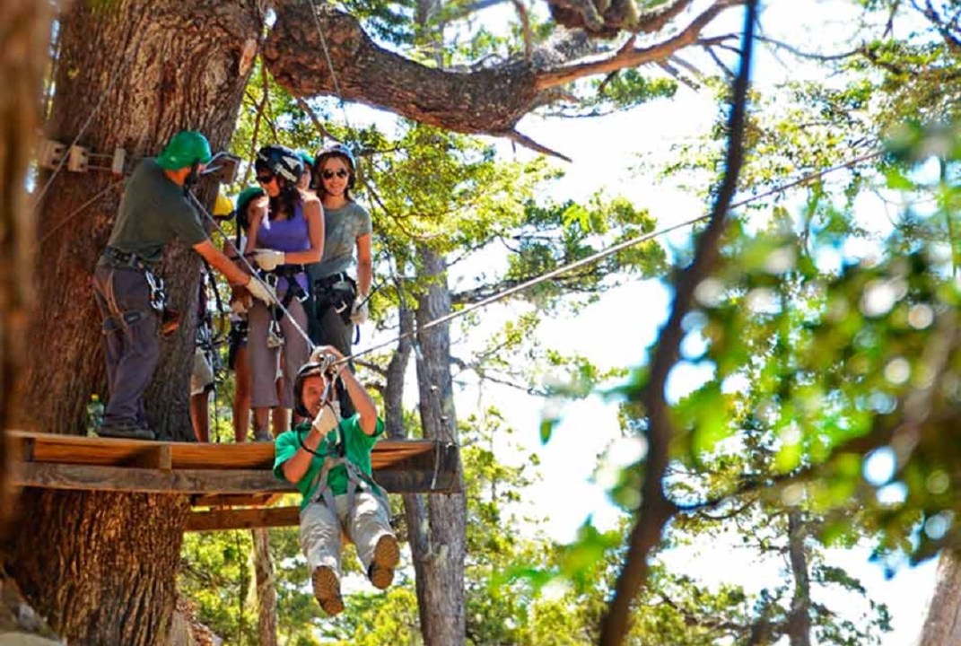 Para disfrutar en grupo de viaje pero con empeño personal, el canopy está habilitado en el bosque del cerro López, en cercanías del Colonia Suiza. También es una actividad para toda la familia y los chicos pueden practicarlo a partir de los 4 años.