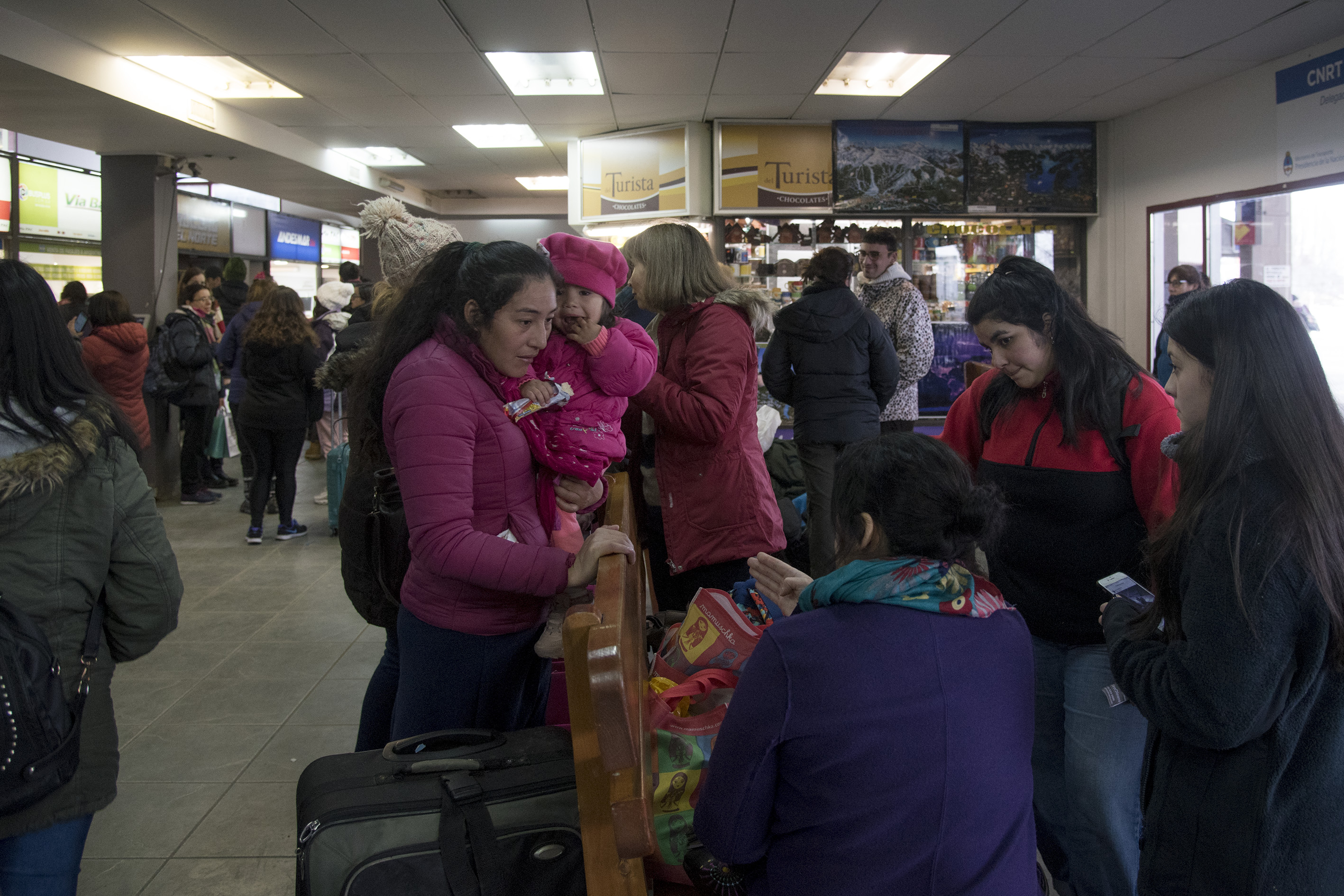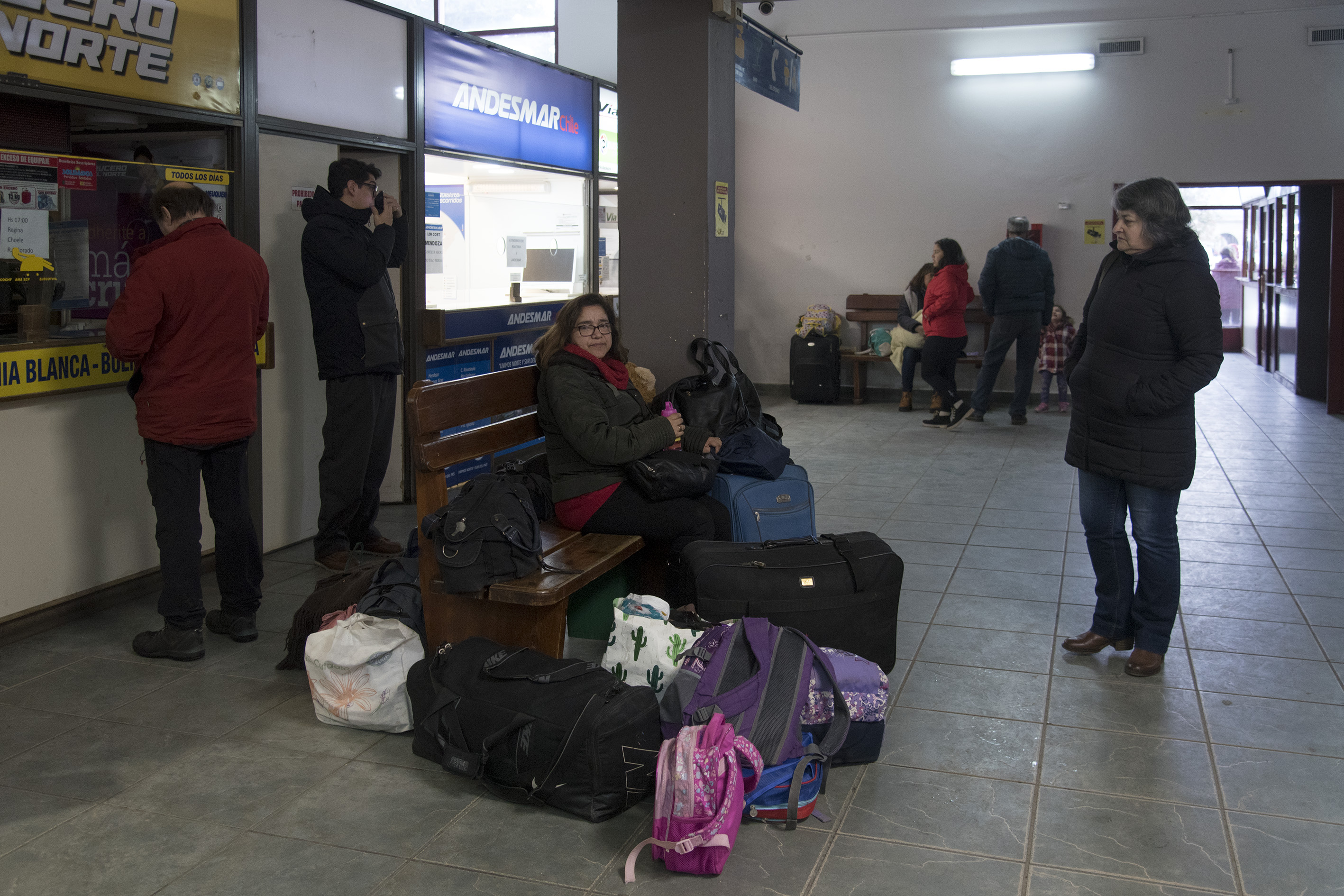 Iris Poffaltt, de 66 años, recalcó que dos noches debió dormir en uno de los bancos de madera de la terminal de ómnibus. «Una mujer de Bariloche muy amable que justo vino a la terminal se enteró de nuestra situación y nos llevó a su casa sin conocernos. Pero mucha gente tuvo que quedarse acá con este frío«, indicó.