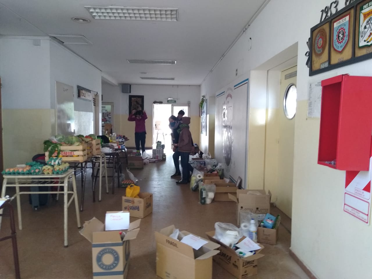 Días atrás, cuatro trabajadores del colegio se reunieron en el establecimiento del barrio Ñireco –de acuerdo al número de documento correspondiente- y armaron 16 cajas que repartieron en sus autos.