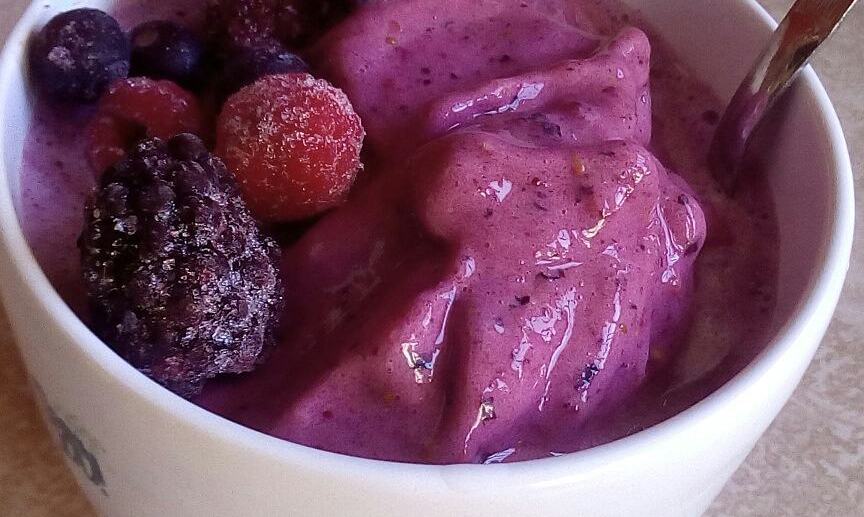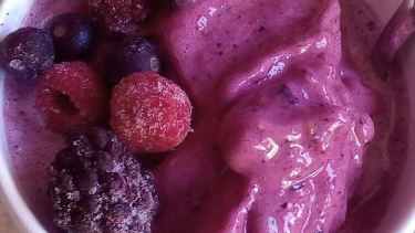Frutos rojos congelados +banana+yogur de vainilla = helado