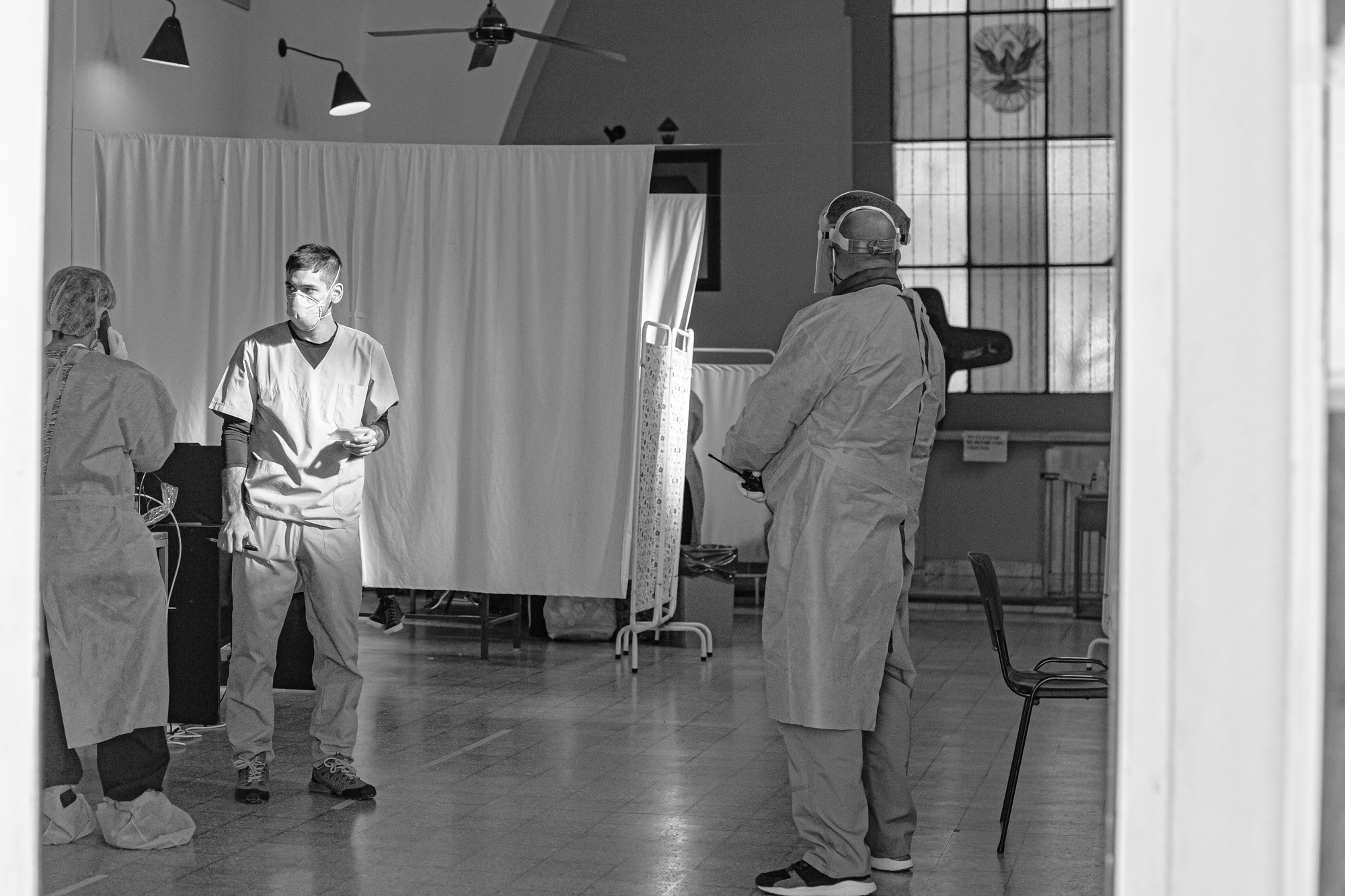 La capilla pasó a ser “Consultorio respiratorio” y los pediátricos ahora son de hisopado. Con el correr de los días empecé a entender los movimientos gracias a lo que me contaron: “La persona que tiene síntomas va al Respiratorio y si es sospechosa se la hisopará, irá a rayos y laboratorio”.