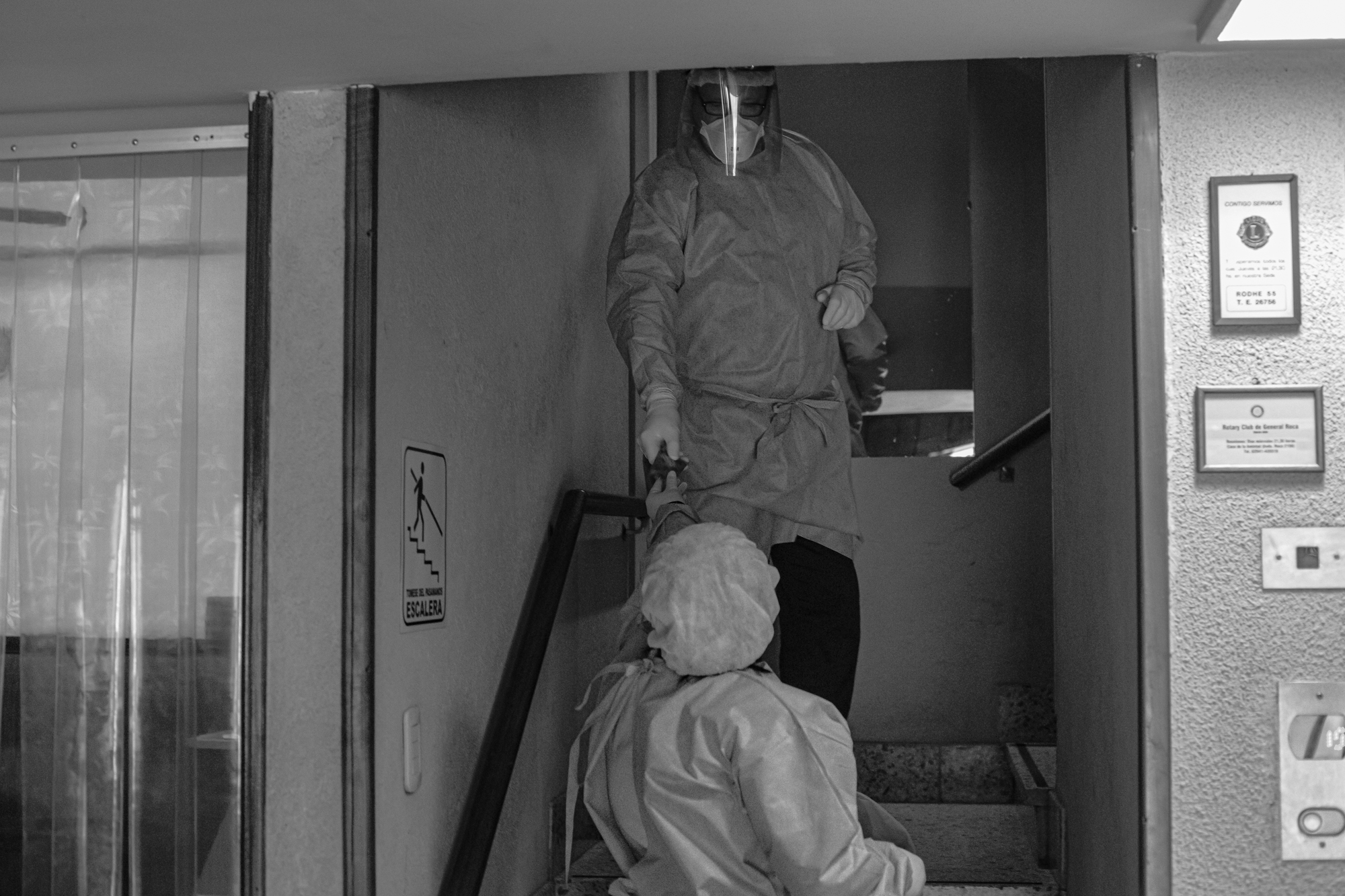 Semanas atrás iban a los hoteles directamente, ahora allí solo van pacientes que reúnan ciertas condiciones. En el hall del edificio central hay pocas personas. Nos miramos, algunos tímidamente nos decimos “hola”. En la recepción están Juan o Luis, uno de ellos es paciente recuperado.