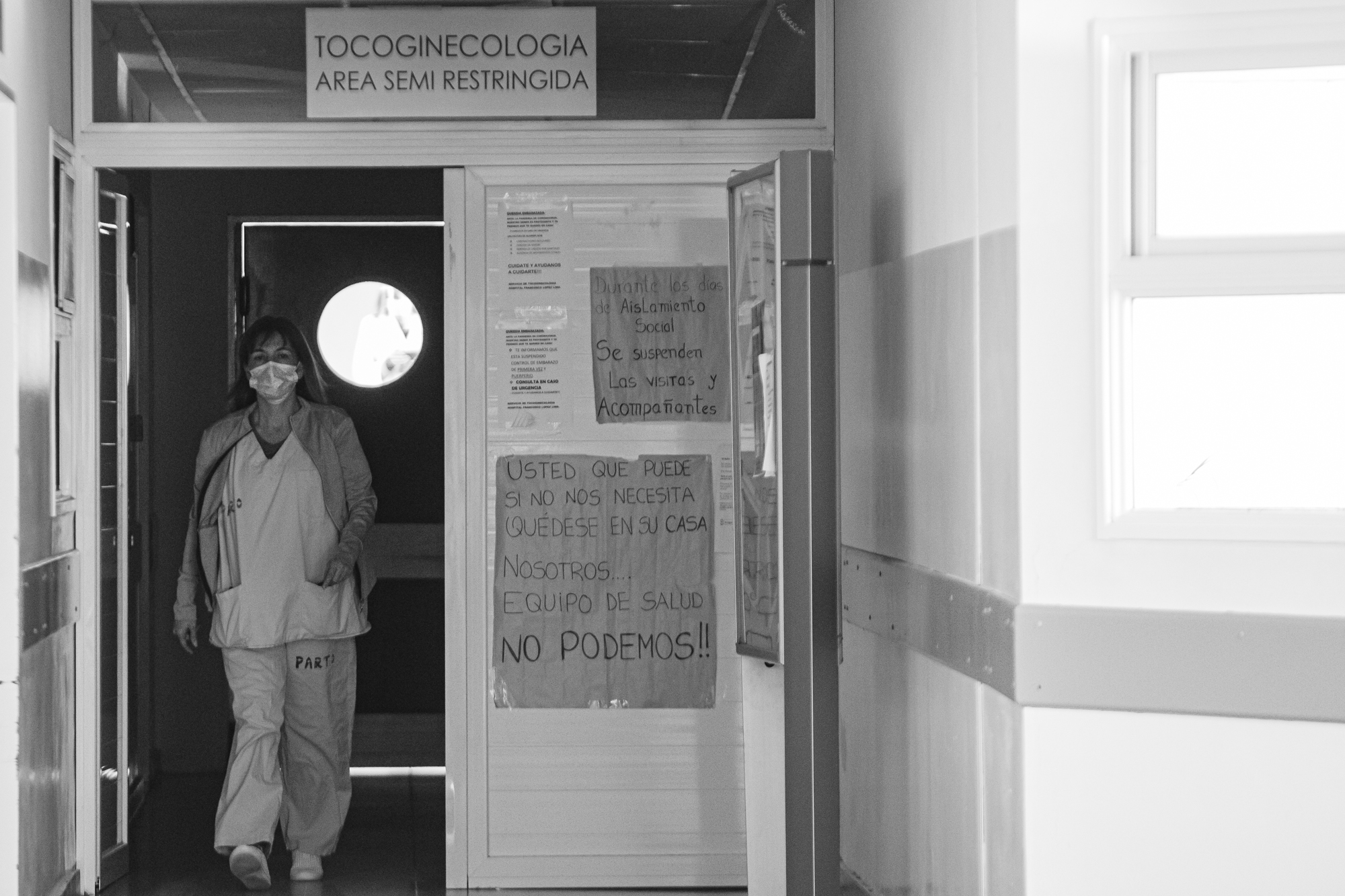 En el hospital, un cartel acerado indica su nombre “Dr. Francisco Lopéz Lima”. Sale una ambulancia. Si es la 04, puede ser Claudio. Todo el hospital se ha modificado desde el inicio de la pandemia.