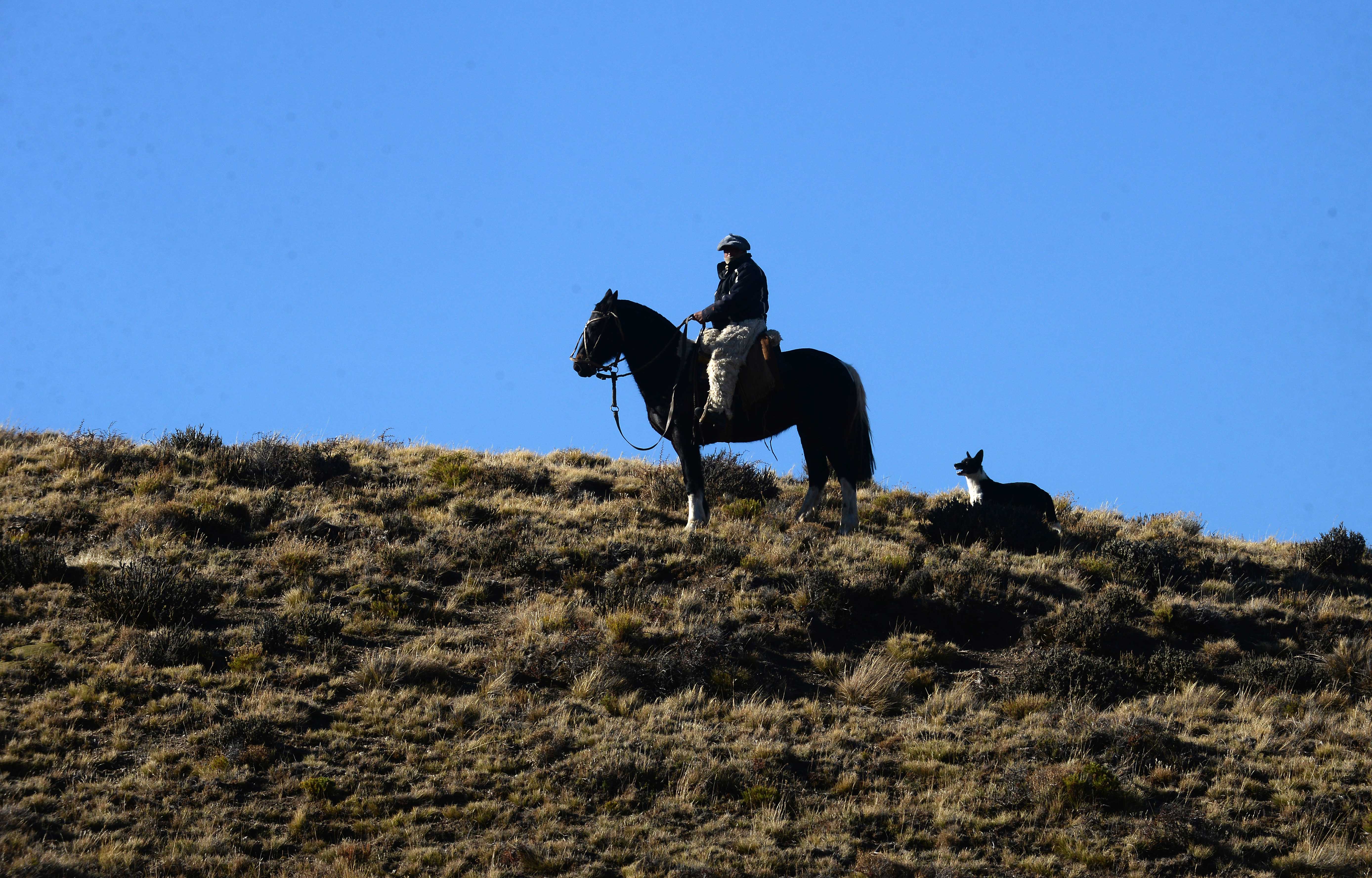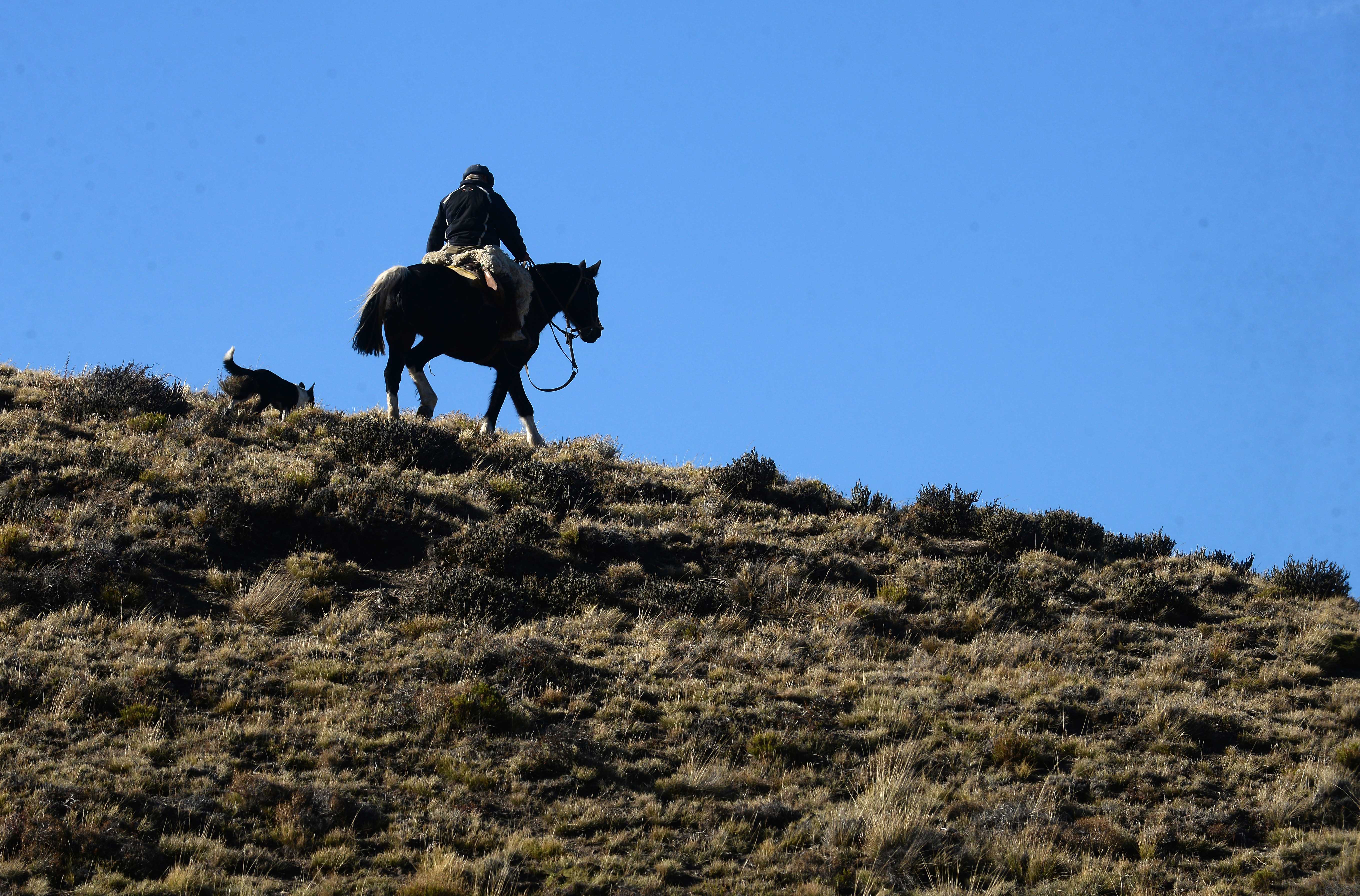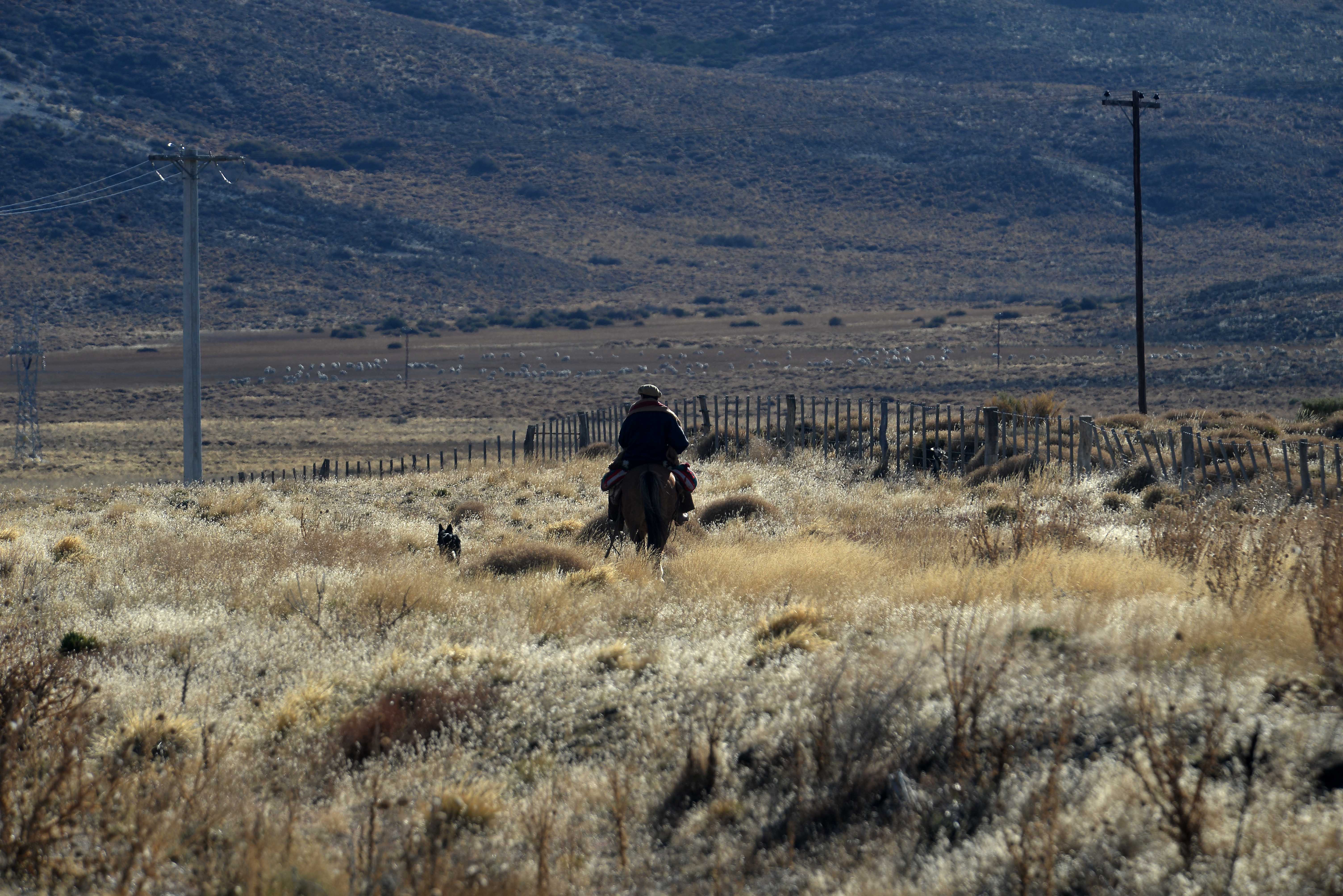 El jinete se despide y sigue su recorrida. Todos los días recorre unos 15 kilómetros. Sube una loma, con su perro a pocos metros, como única compañía. Todavía le queda un largo trecho por estas tierras de coirones, uñas de gato y neneos.