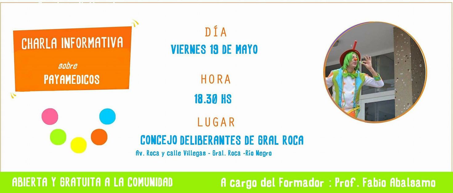 Este viernes 19, a las 18.30 y en el Concejo Deliberante de Roca, se brindará una charla abierta y gratuita, a cargo del profesor Fabio Abalsamo, fundador de Payamédicos en varios puntos del país y referente a nivel nacional de esa corriente de profesionales.