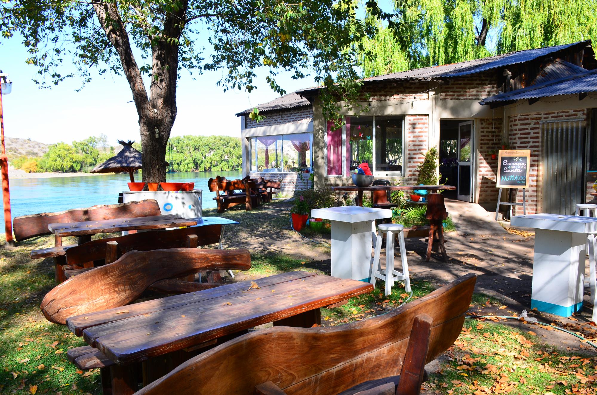 Un restó que sorprende a orillas del río Negro, frente a la barda, en Regina