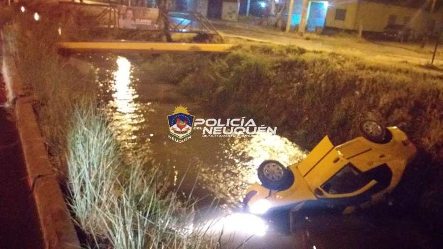 Un taxi que transportaba a un pasajero perdió el control y cayó esta madrugada en un canal en Valentina Sur, en Neuquén. Ambas personas resultaron con golpes menores.