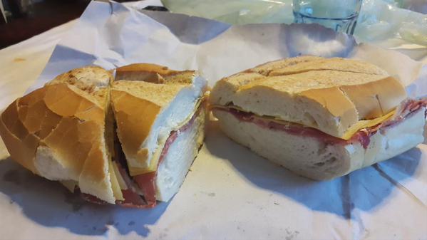 Clásico, rico y accesible. Un buen pedazo de pan francés con rico y generoso jamón crudo y queso y una capa magistral de manteca. Sin extravagancias ni firuletes extraños. Fresco, sabroso y llenador. En uno de los salones de cocina más tradicionales de la city. Quizá un sodeado o una birra para acompañar y evitar la patada al pecho deseada y odiada en determinadas circunstancias de gula o simplemente envuelto para llevar y comer en casa, o en una plaza. El sándwich de la semana indudablemente es este. $140
