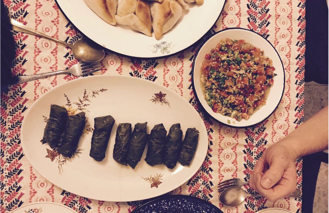 Baba Ganush, niños envueltos, keppes crudo y cocido, ensalada tabuleh, humus, dedos de novia y baklava, la mesa es una fiesta. Mariela un verdadero hallazgo.