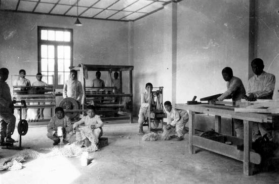 En el otro extremo del lote funcionaban grandes talleres donde se dictaban clases de carpintería y tejido, una actividad que muchos de los niños de las comunidades ya sabían realizar.
