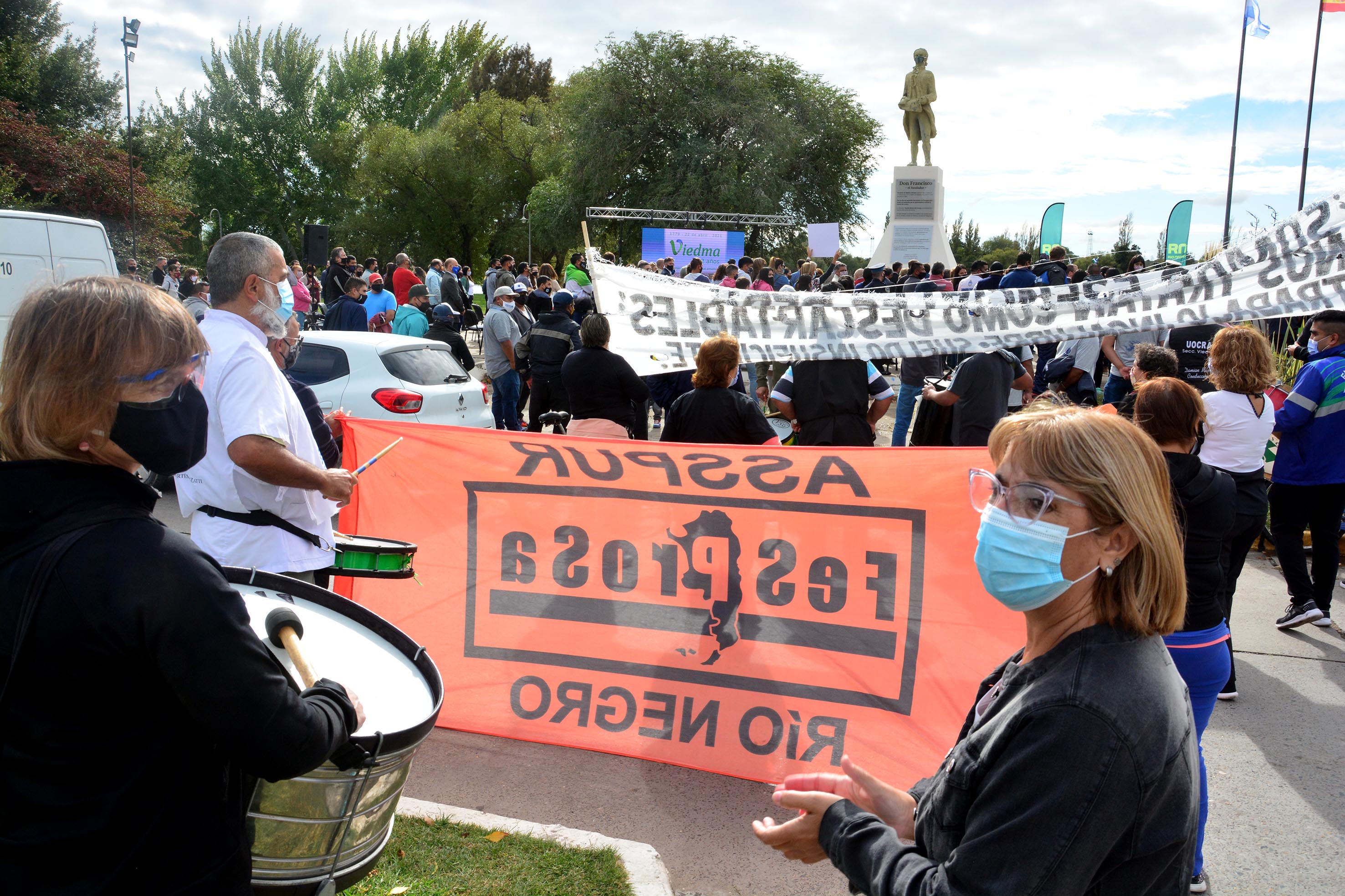 Carreras señaló que el hospital púbico es de todos y recordó que “estamos construyendo seis hospitales en toda la provincia”, entre ellos el de Las Grutas “que lo vamos a inaugurar con el mismo escenario” sostuvo de cara a los manifestantes.