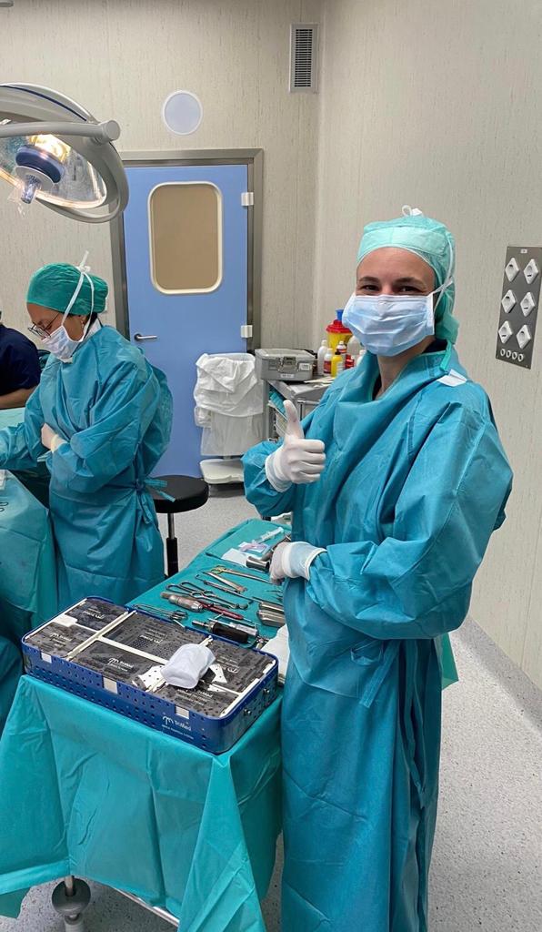«Cuando volví ya estaba el covid y destruyó todos los trabajos acá, sobre todo el turismo. Con toda la cuarentena y con todo el tiempo que tuvimos para pensar, me di cuenta que extrañaba lo mío, así que por suerte conseguí trabajo en una ortopedia que vende insumos para traumatología, básicamente lo que hice yo toda mi vida: yendo a cirugías, asistiendo a los médicos para la colocación de los implantes, en lo que me formé y lo que estudié», contó la joven sobre el trabajo que hoy ocupa sus días.