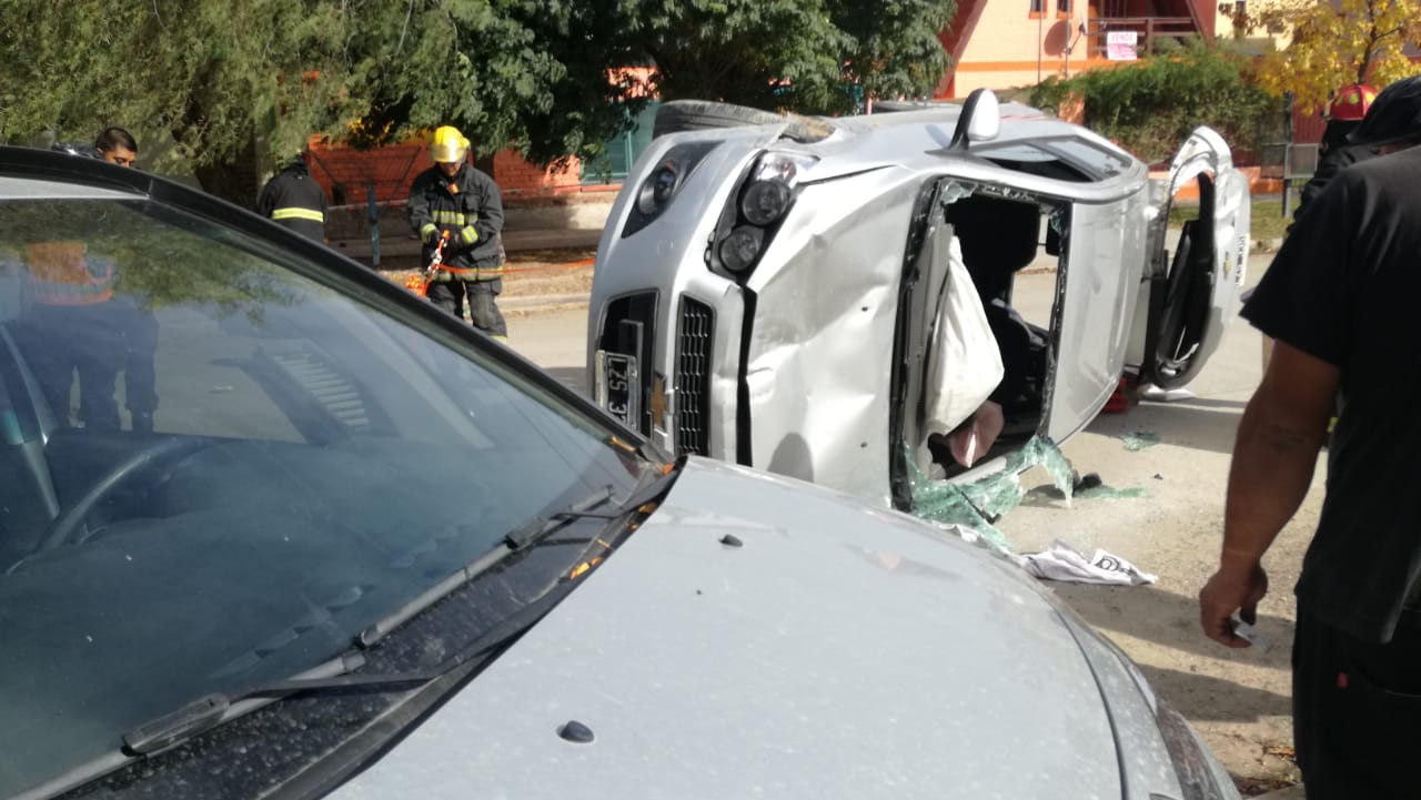 Posteriormente y para evitar el choque frontal con el vehículo mayor, el conductor maniobró una vez más y habría impactado contra otro coche estacionado, en este caso un Ford Ka. Motivo de ese golpe, el conductor terminó de perder el control del vehículo y finalmente volcó.