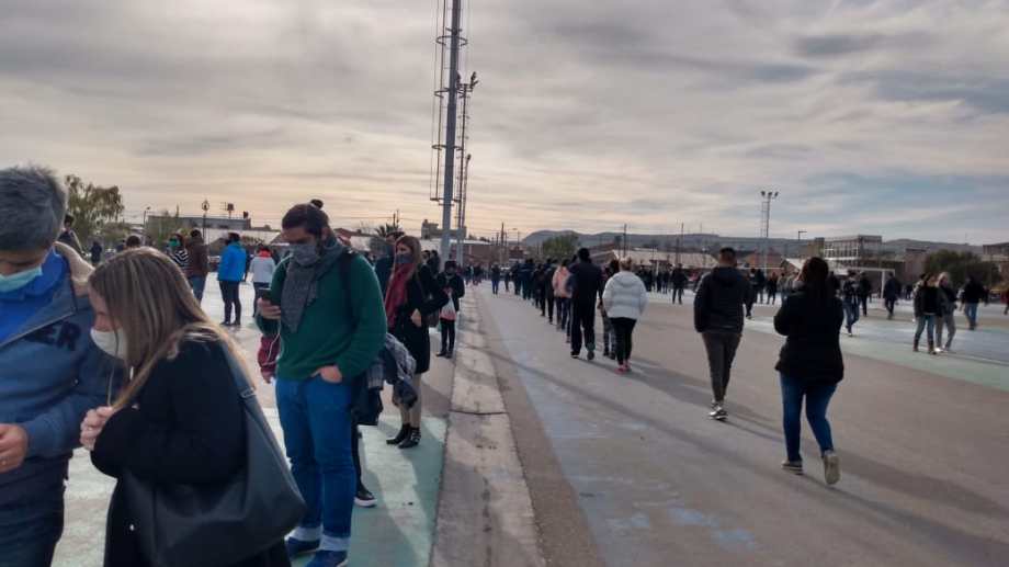 Desde Salud informaron que la jornada es este martes 29. Comenzó a las 14 y se extenderá hasta las 21, en el estadio Ruca Che. Desde temprano se formó una extensa fila de personas interesadas en vacunarse.