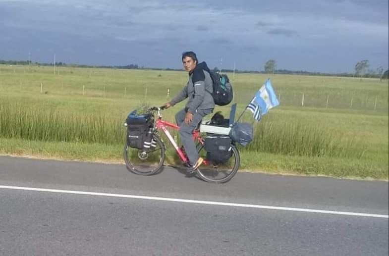 Sebastián hace cuatro años recorre el mundo en bicicleta. Estaba volviendo a Chos Malal y lo agarró el aislamiento obligatorio en Luján (Buenos Aires). Busca la forma de volver lo antes posible.