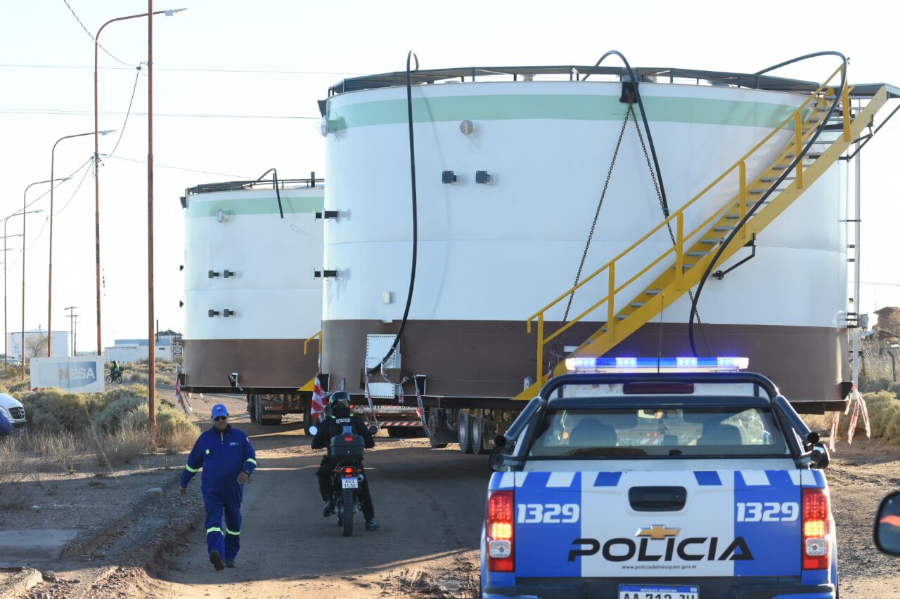 Esta mañana, los dos tanques de almacenamiento de petróleo que tenían previsto partir desde la empresa que los construyó, salieron por la Ruta 22, en Plaza Huincul.