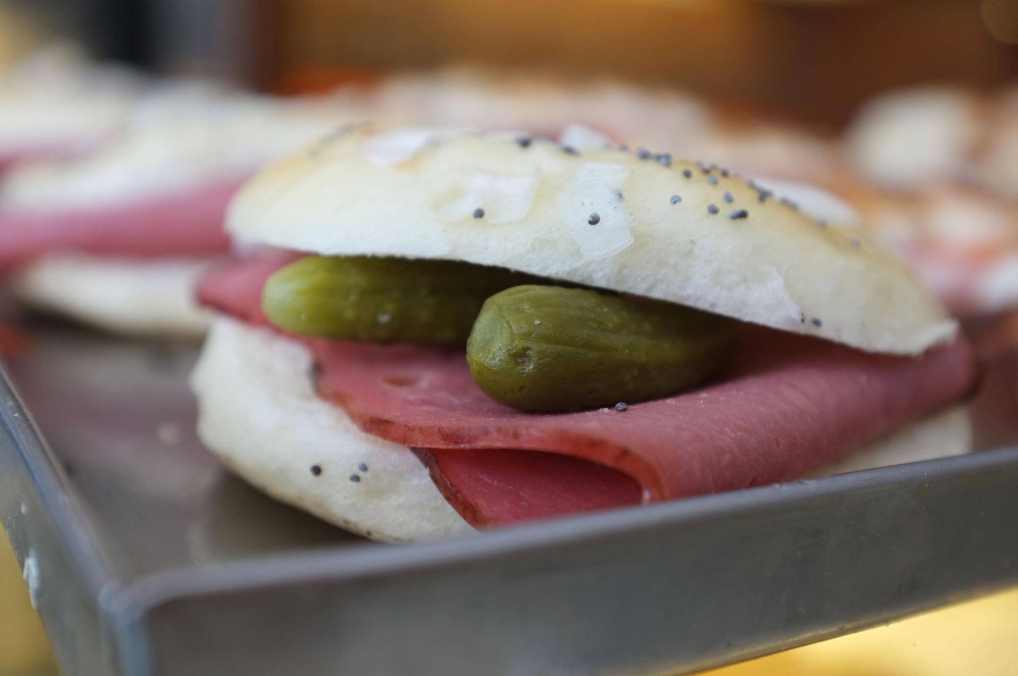 Los knishej son bocados de papa y cebolla; pletzalej es un sandwich con pastrón y pepinos agri-dulces y las burekas están hechs de masa de hojaldre con sésamo rellenas con queso. “También tendremos en nuestro stand bandejas con una porción de cada una de estas comidas”.