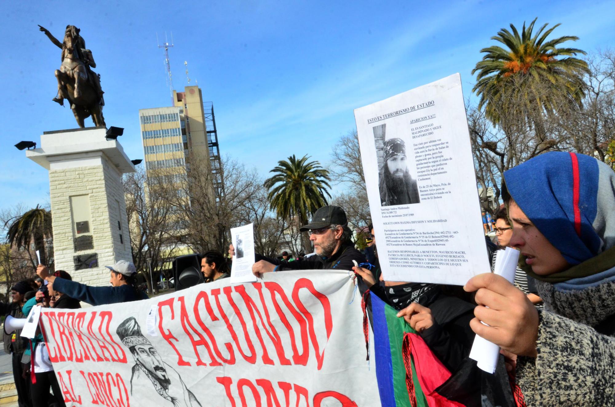 Finalizado el discurso un grupo de representantes de pueblos originarios comenzó a reclamar por la liberación de Facundo Jones Huala, un líder mapuche, detenido en Bariloche por Gendarmería y por la aparición de Santiago Maldonado, un artesano desaparecido hace más de una semana tras un operativo de la misma fuerza sobre un corte de la ruta 40 protagonizado por la comunidad mapuche en jurisdicción de Esquel.