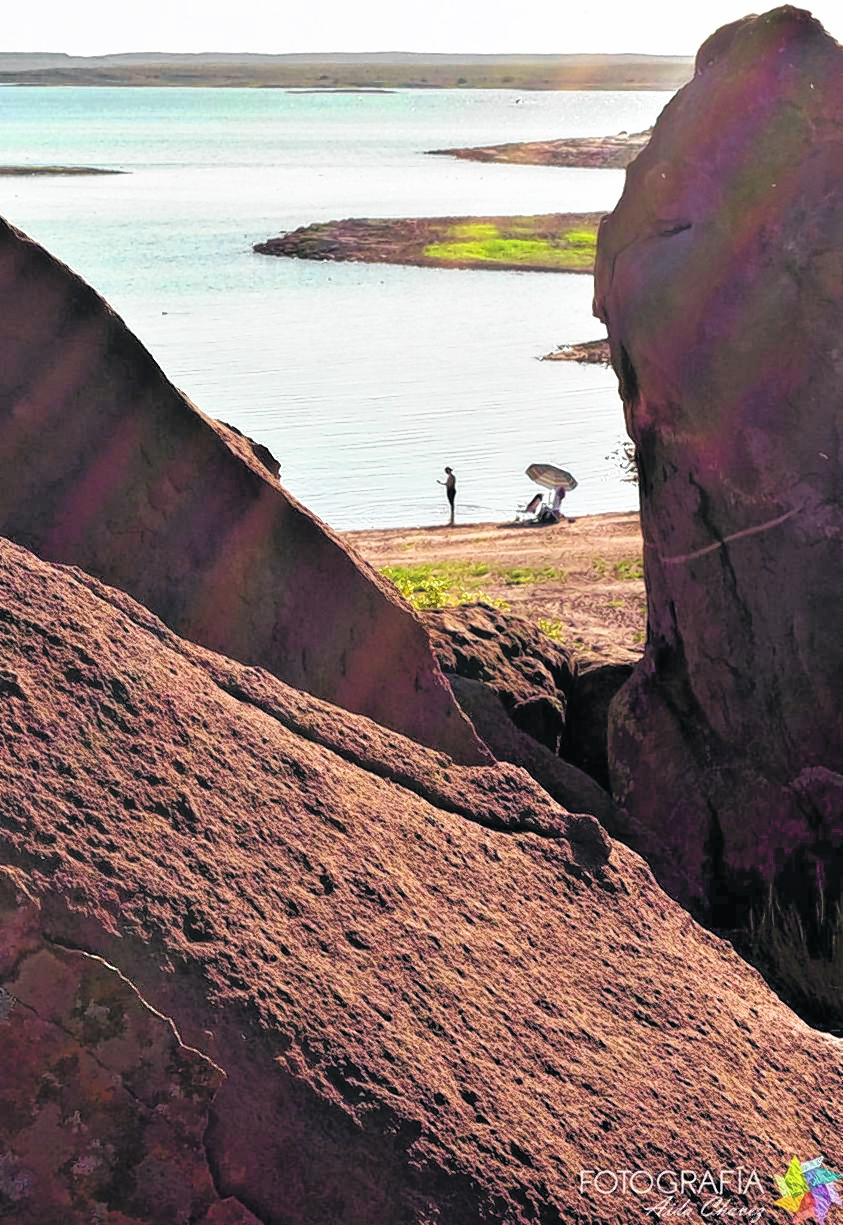 Sobre el lado rionegrino, un lugar muy elegido es Pueblo Blanco, una costa paradisíaca. Hay que cruzar la represa y hacer 8 kilómetros para llegar a playas con aguas transparentes que desde la altura de los riscos se observan de color turquesa.