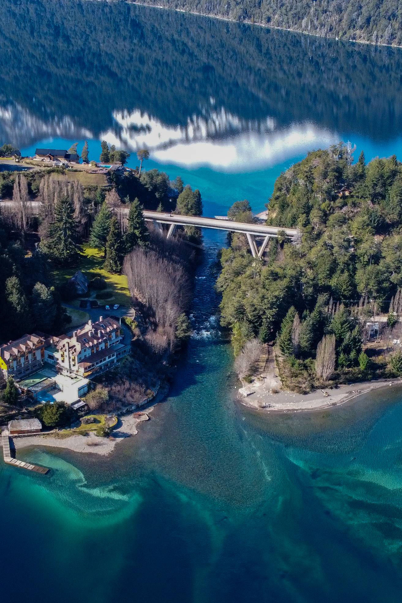 El río más corto del país, el Correntoso, con solo 300 metros de extensión, visto desde el puente sobre la ruta 40, es uno de los paisajes escénicos que ofrece Villa La Angostura en todas las épocas del año y el paso obligado para iniciar el recorrido hacia el camino de los Siete Lagos, uno de los circuitos turísticos de la ciudad neuquina.