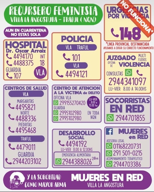 El espacio multisectorial «Mujeres en Red» detectó los problemas cuando comenzó a trabajar con un «recursero feminista» para ayudar a las víctimas durante el aislamiento. El mismo cuenta con teléfonos de distintos organismos, pero al tratar de llamar al 148, tuvieron inconvenientes.