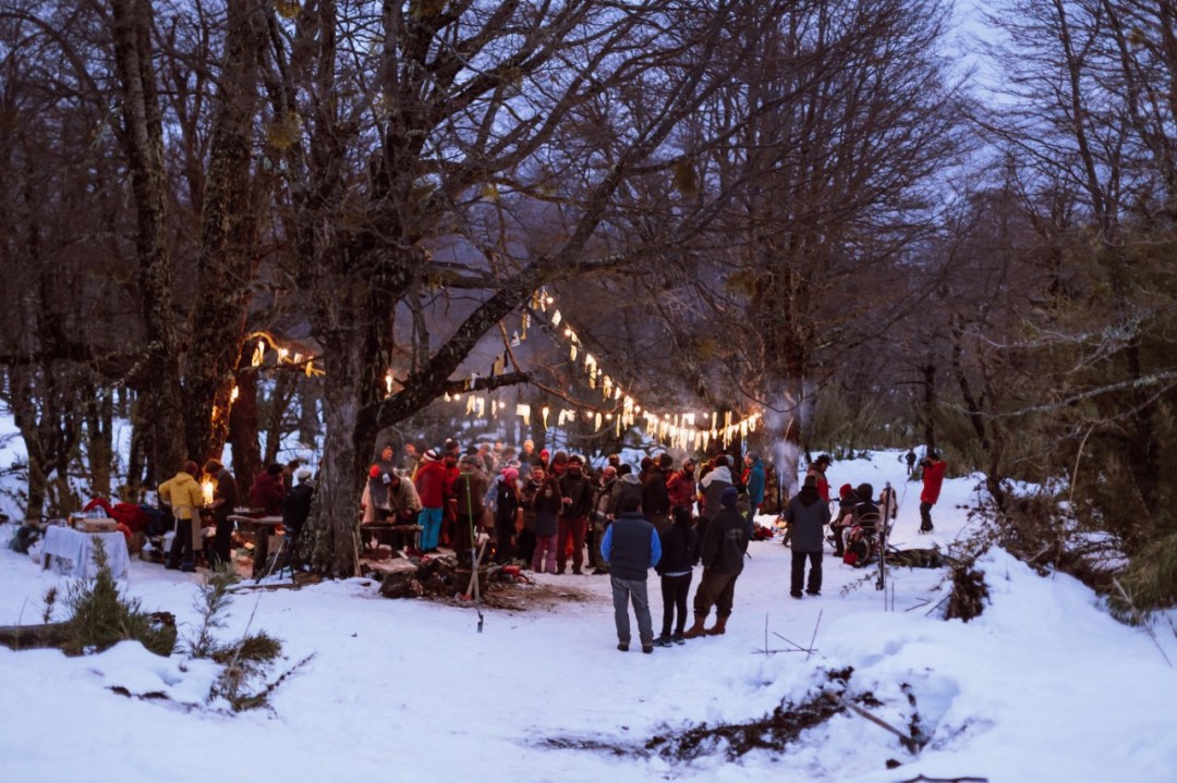 Al terminar la sesión de snowkite, el día de aventura continúa con un descenso en freeride en esquí o snowboard, por un desnivel de 800 metros, en una bajada sobre nieve virgen de 40 minutos atravesando un bosque de lengas, hasta llegar a un paraje muy próximo a la ruta de los 7 lagos. Allí se comparte una experiencia gourmet de cocina patagónica.