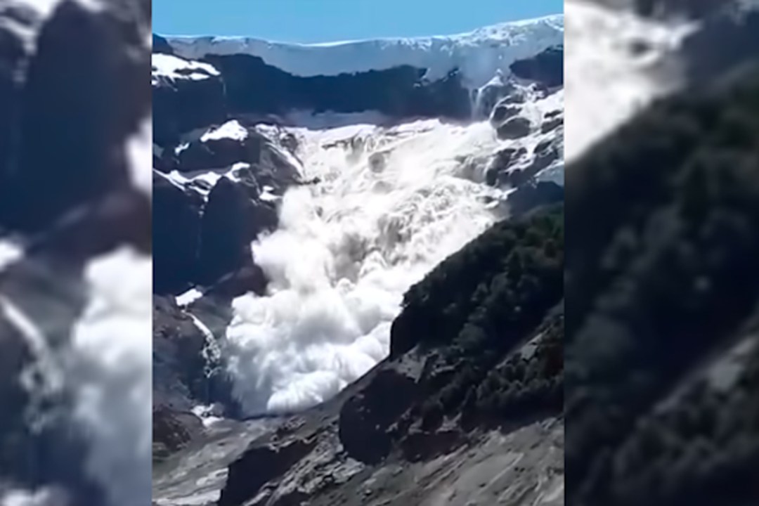 Guiaba a turistas en Bariloche y filmó una increíble avalancha de hielo en el Tronador