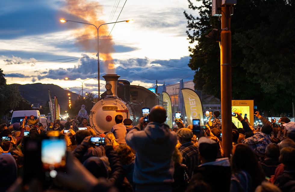 Para la fiesta le dieron vida a la antigua locomotora que se usaba como repuesto y estaba en desuso. En un punto de la ciudad, se pudo ver cómo la locomotora cobró vida, como si estuviera encendida. Ahora, quedará disponible durante todo el verano, siempre en horario nocturno para poder apreciar las luces, el humo y el vapor.