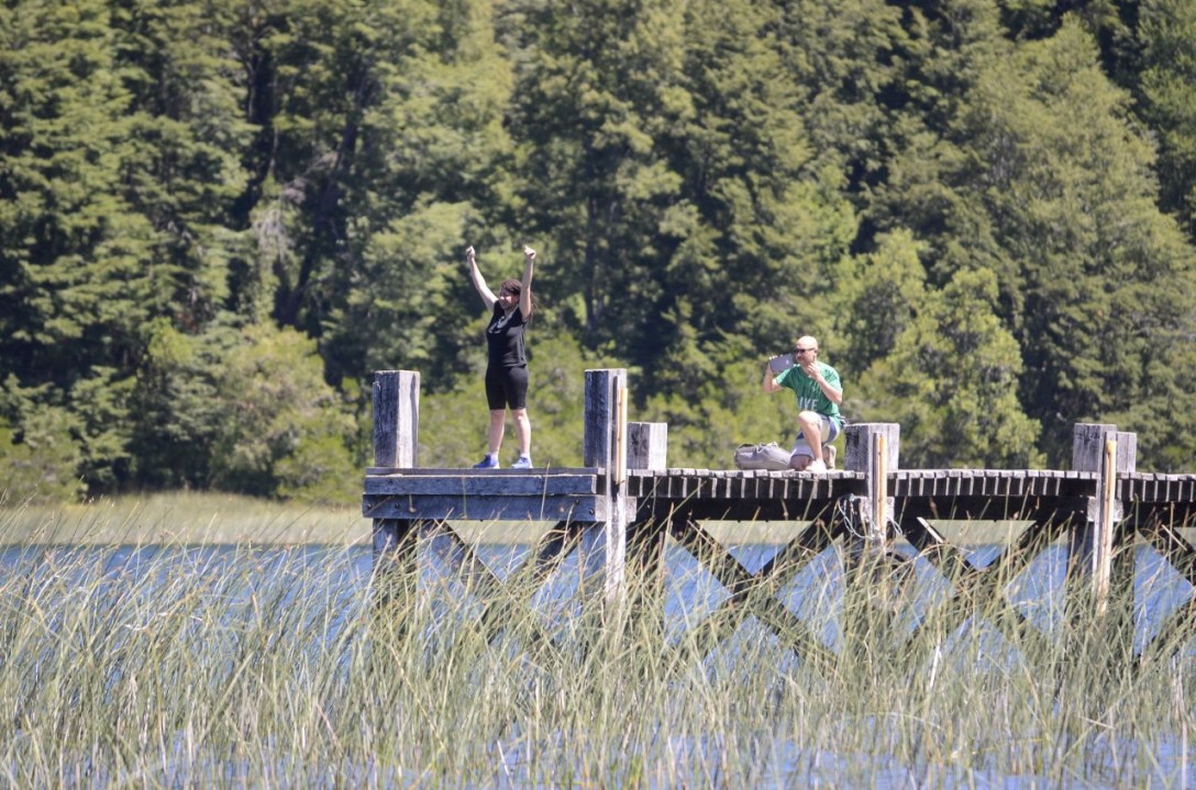 Llegaron al puerto Chachín un lugar agreste que en otros tiempos fue protagonista de una gran actividad forestal y maderera. El catamarán se detuvo sobre el lago Nonthue y ellos bajaron para hacer una caminata hasta la cascada.