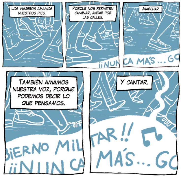 La tira Viajeros, sale los domingos en el suple de viajes y turismo Voy de Diario RÍO NEGRO.