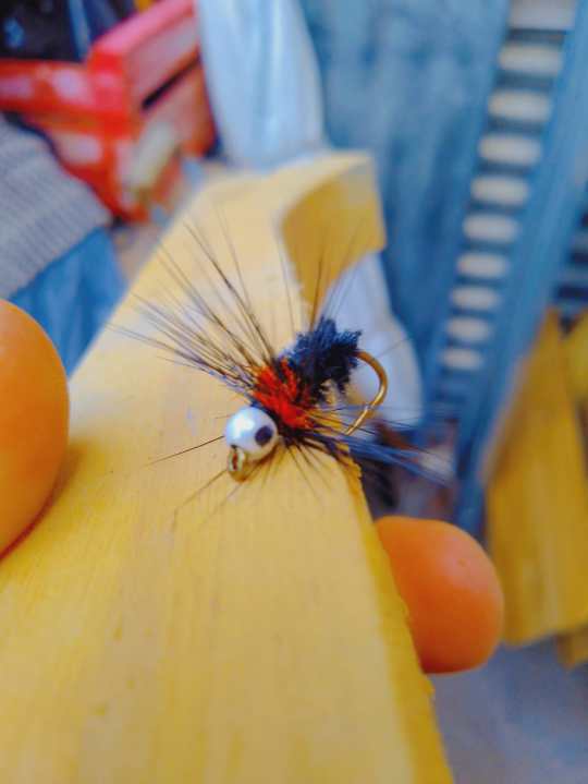 Nicolás recomienda usar una caña de 9 pies, del 7 u 8. En cuanto a moscas cualquier imitación o señuelo que les presentemos, lo tomarán, porque la carpa no es selectiva a la hora de comer. Se rigen más por los colores que por las formas. Las moscas emergentes son la mejor elección.