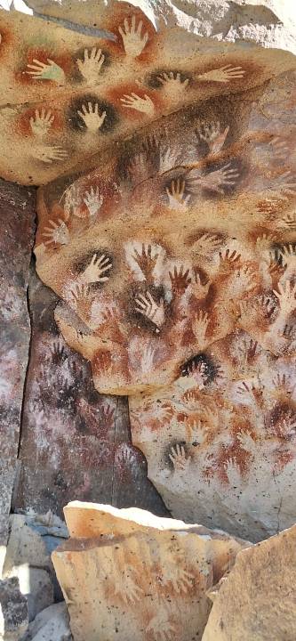 Después siguieron hasta el pueblo Perito Moreno, la opción cercana más económica para lo que venía: ir a las Cuevas de las Manos y contemplar tanta historia a centímetros de sus ojos y contratar un tour para cruzaron a Chile por Los Antiguos y conocer las famosas Capillas de Mármol en Chile.