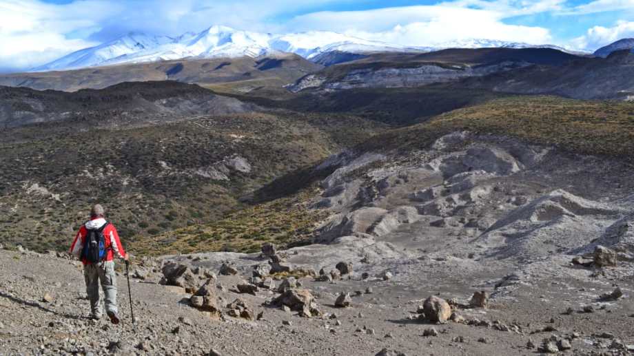Senderismo hacia la Yesera del volcán Tromen y su cono de venteo del norte neuquino