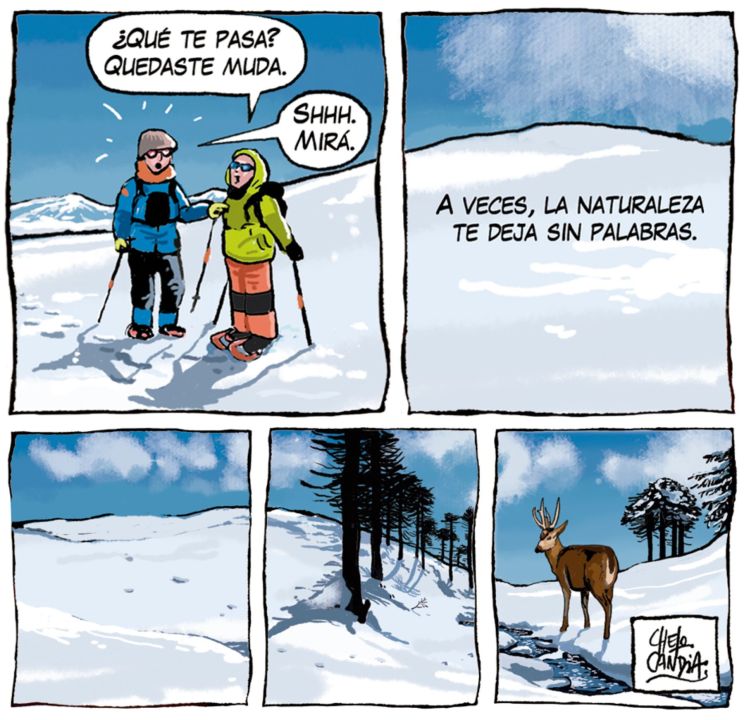 La tira Viajeros, sale los domingos en el suple de viajes y turismo Voy de Diario RÍO NEGRO.
