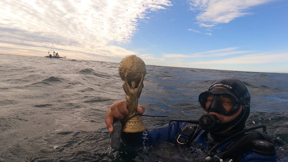 A horas de un nuevo partido amistoso de la Selección Argentina, un buzo grabó un simpático video en el fondo del mar, donde se sumergió con el trofeo, que brilló entre sargos, cabrillas y besugos