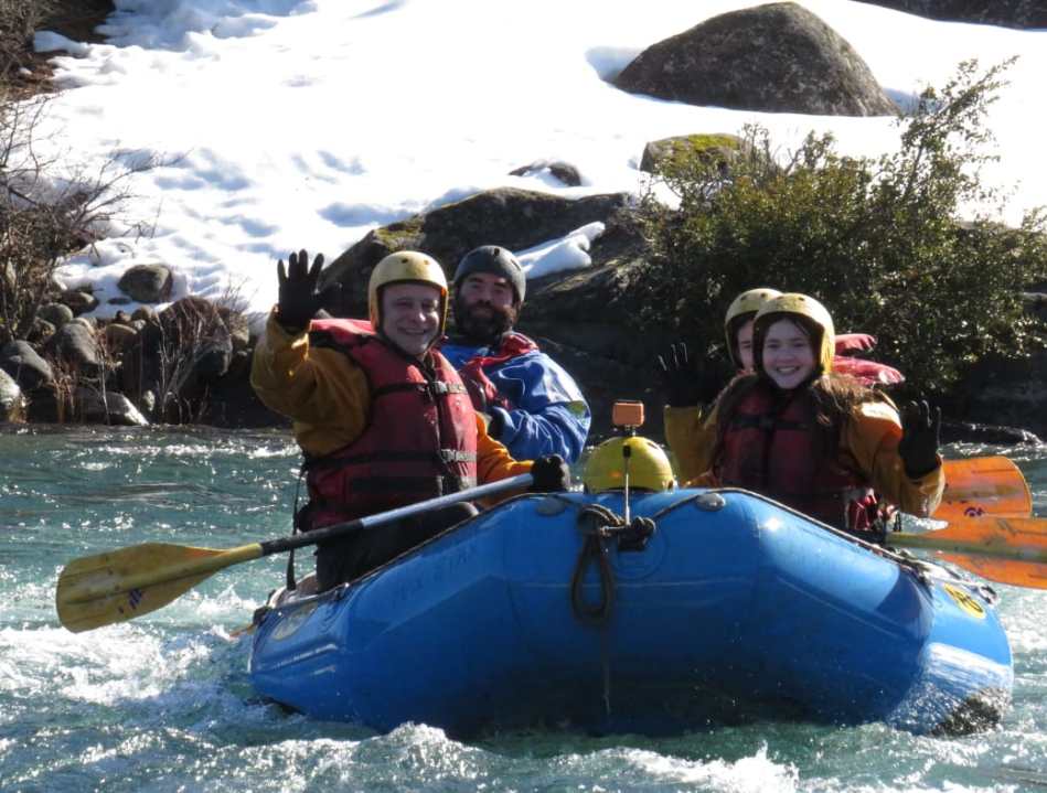 Villa Pehuenia y la aventura de hacer rafting en el río Aluminé rodeado de nieve