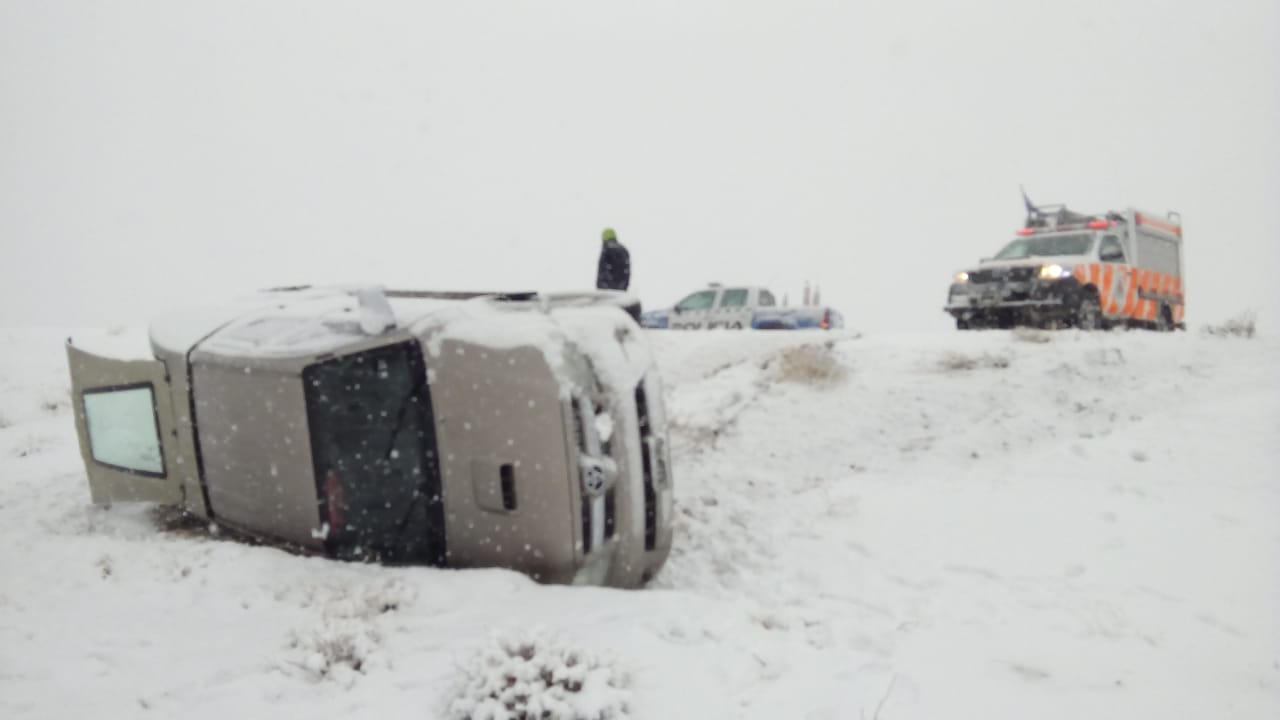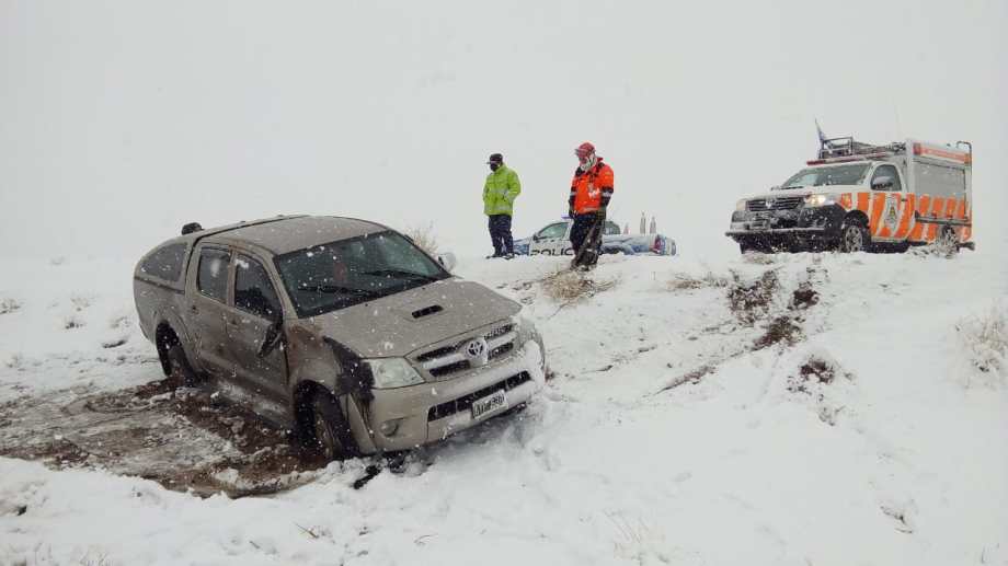En el lugar, la zona de Challacó hay una importante cantidad de nieve acumulada sobre la calzada, según refirieron los propios bomberos.