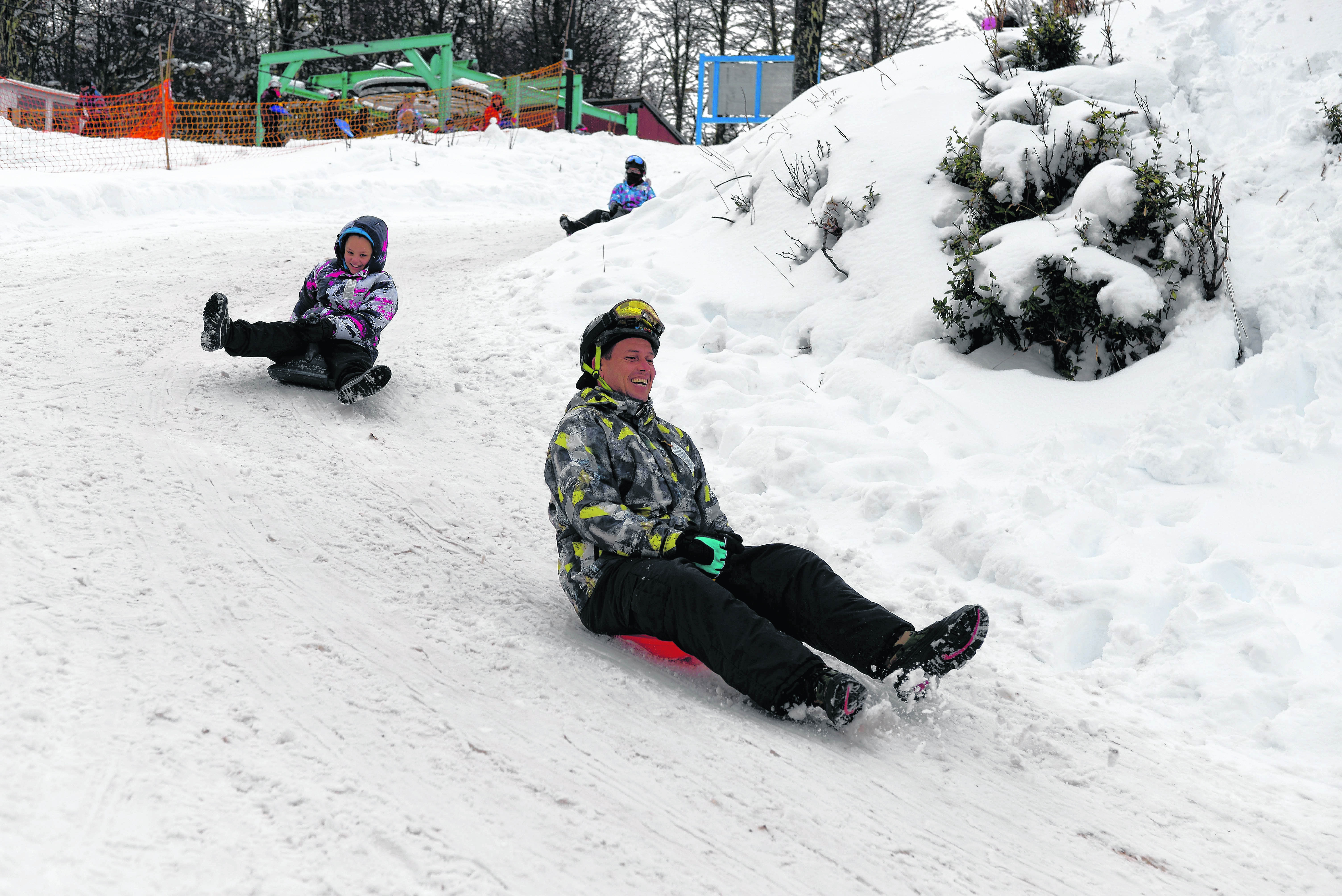 Otra opción de aventura son las pistas para deslizarse en trineos. En todo el complejo, entre el bosque nevado, se delimitaron cuatro pistas, cada una con un grado de dificultad mayor que la otra. Todas parten desde la cumbre y tienen entre 600 y 800 metros de longitud cada una.