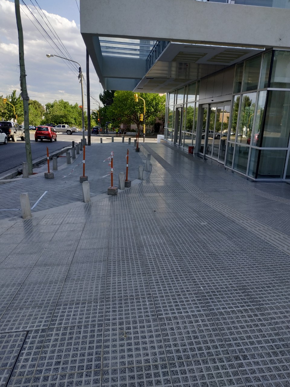 Próxima a inaugurarse la torre más alta de la Patagonia, los sufridos peatones observamos que en este edificio han suprimido la vereda y han emplazado, en su lugar, el estacionamiento para apeaje. ¿Qué haremos los peatones para superar esta instancia: entraremos en una pequeña vereda construida en la zona privada o, seguramente, bajaremos a la calzada? Total, solo podríamos ser arrollados por algún vehículo…