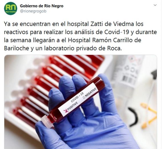 El gobierno anunció que llegaron al hospital Artémides Zatti los reactivos que permiten realizar desde este miércoles los controles de coronavirus Covid-19.