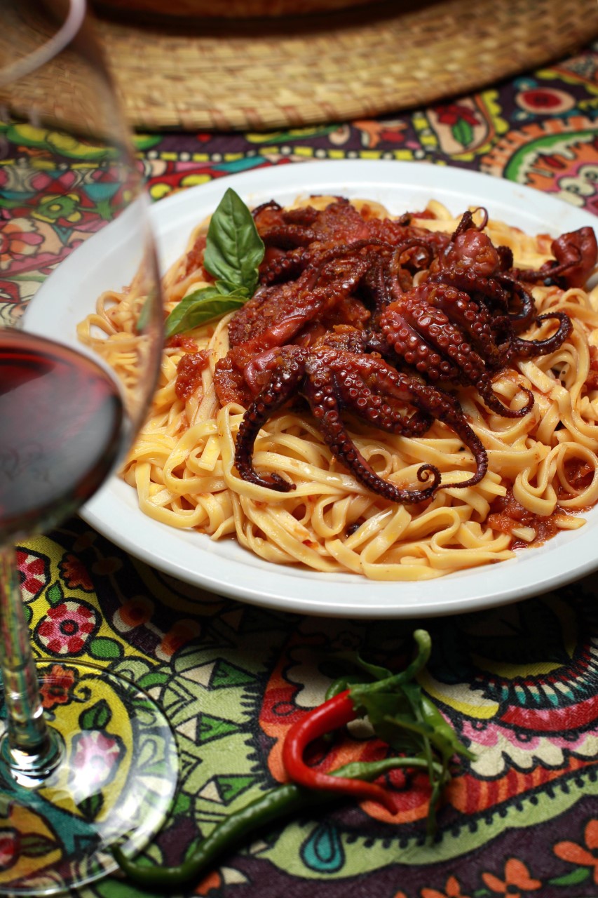 En “Mora” empezó con 10 mesas de Pepsi; hoy puede recibir allí hasta 60 comensales. Nunca cambió la receta de ninguna de sus especialidades. “El cliente vuelve porque le gustó lo que comió”. No quiere ser una más que cocina. “Trabajo para ser una marca”. No tiene drama en compartir recetas, al contrario. “Para esta salsa rehogué cebolla y zanahoria bien picada en aceite de oliva. No me olvido de unas hojitas de laurel. Mi papá le agregaba un poquitín de ají. Al ratito agrego los pulpitos y el tomate cortado de cubitos. Dejo todo unos 30 minutos al fuego. Una vez lista la dejo descansar unos minutos para luego verterla sobre los tallarines”. Con unas buenas copas de vino tinto fue un placer probar su creación.