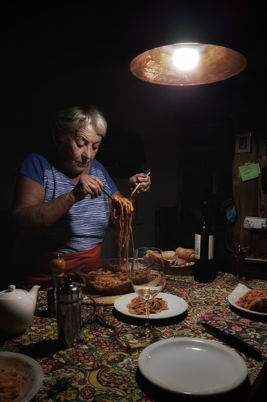 La masa de los fideos la estiró decenas de veces hasta finalmente enrollarla y cortarla con su cuchillo preferido. “Por estas cosas es que digo que cocinar es una ceremonia. Nadie cocina porque solo aprende una receta sino por todo lo que provoca en uno los utensillos, los condimentos, los productos, las ollas, los aromas, la memoria y la historia de cada uno”, dice “Chichita”.