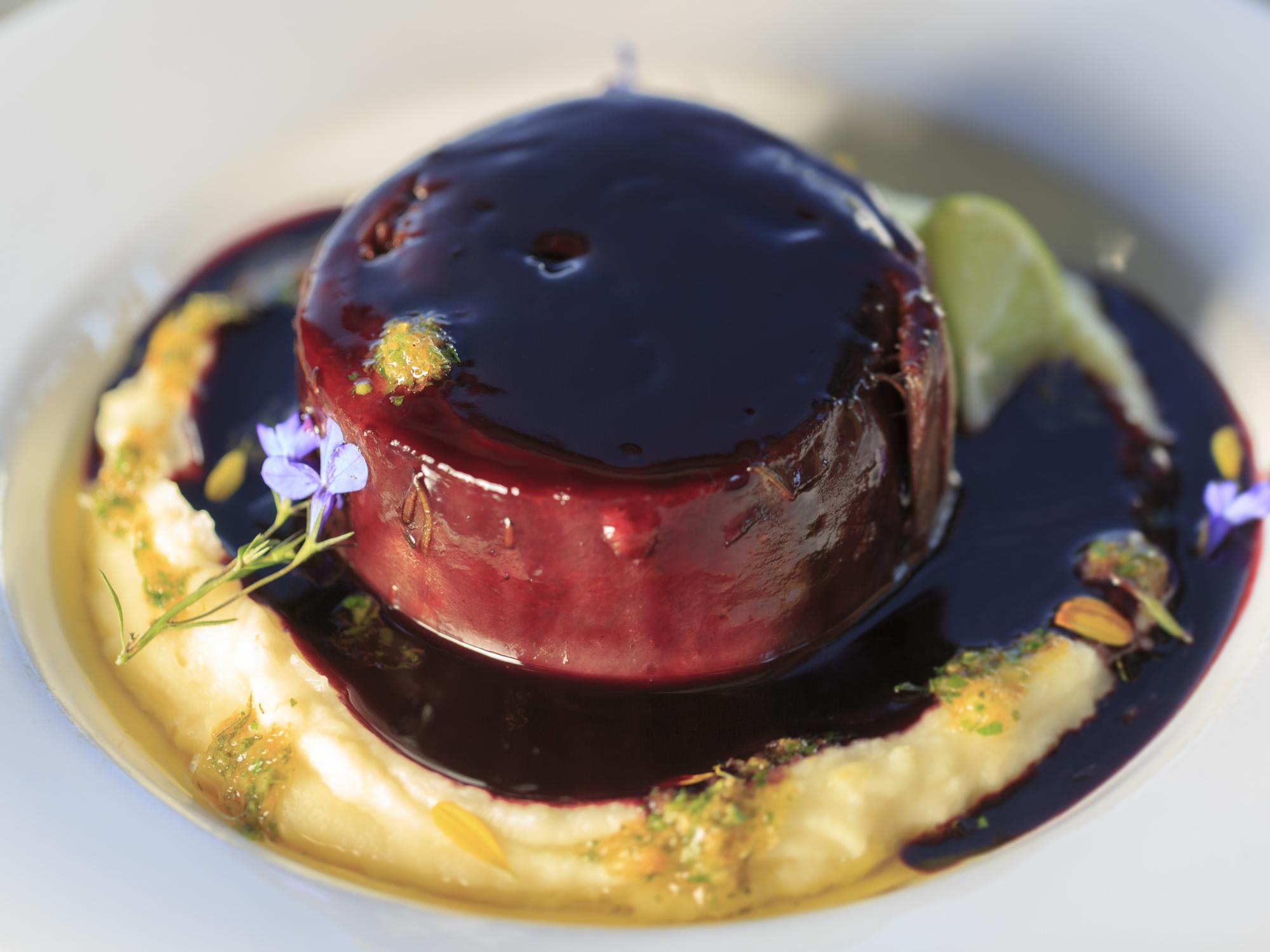 Cordero patagónico en cocción sous vide (18hs a 63º), con glaseado en jarabe de sauco