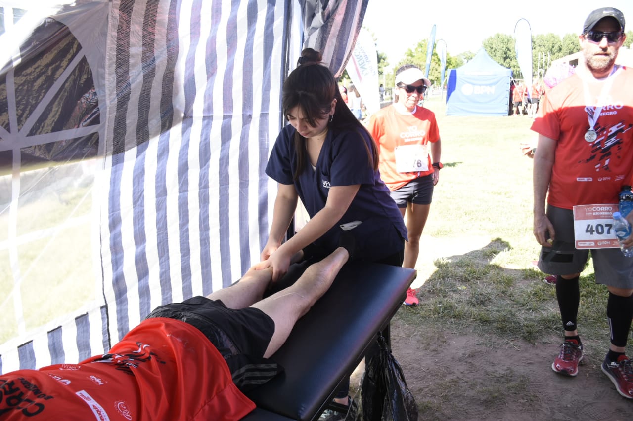 Belén corrió los 6k y vino desde General Roca. No pudo esconder las lágrimas mientras le hacían masajes en el puesto de recuperación de la Universidad UFLO. «Estoy muy emocionada, es una experiencia para mí. Corro en grupo, cuesta y a mí me costó un montón. Vine con una amiga. Somos de un grupo que da el municipio y gracias al profe Maxi estamos acá».