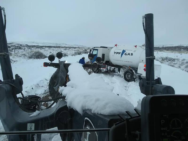 En el paraje los vecinos salieron a recibir a las máquinas y los camiones de GLP con aplausos dado que de ellos dependía el reabastecimiento del gas para combatir la intensa ola polar.