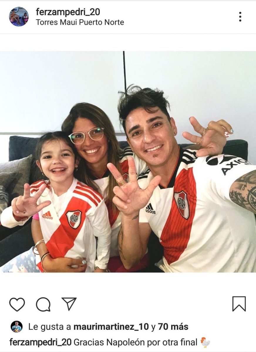 Esta vez le pasó a Fernando Zampedri que publicó en su cuenta de Instagram una foto, junto a su familia, con la camiseta de River.